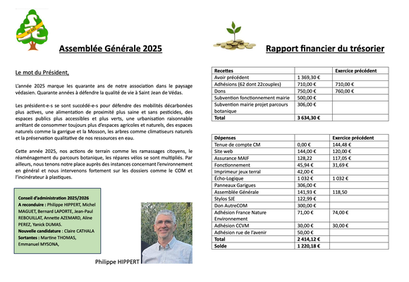 Vous trouverez également le rapport moral, le rapport d'activités et le bilan financier pour notre Assemblée Générale 2025 (Les adhérents recevront des informations complémentaires).