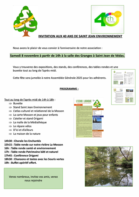Nous fêterons les 40 ans de notre association SJE , le samedi 8 novembre , salle des Granges à 14h.